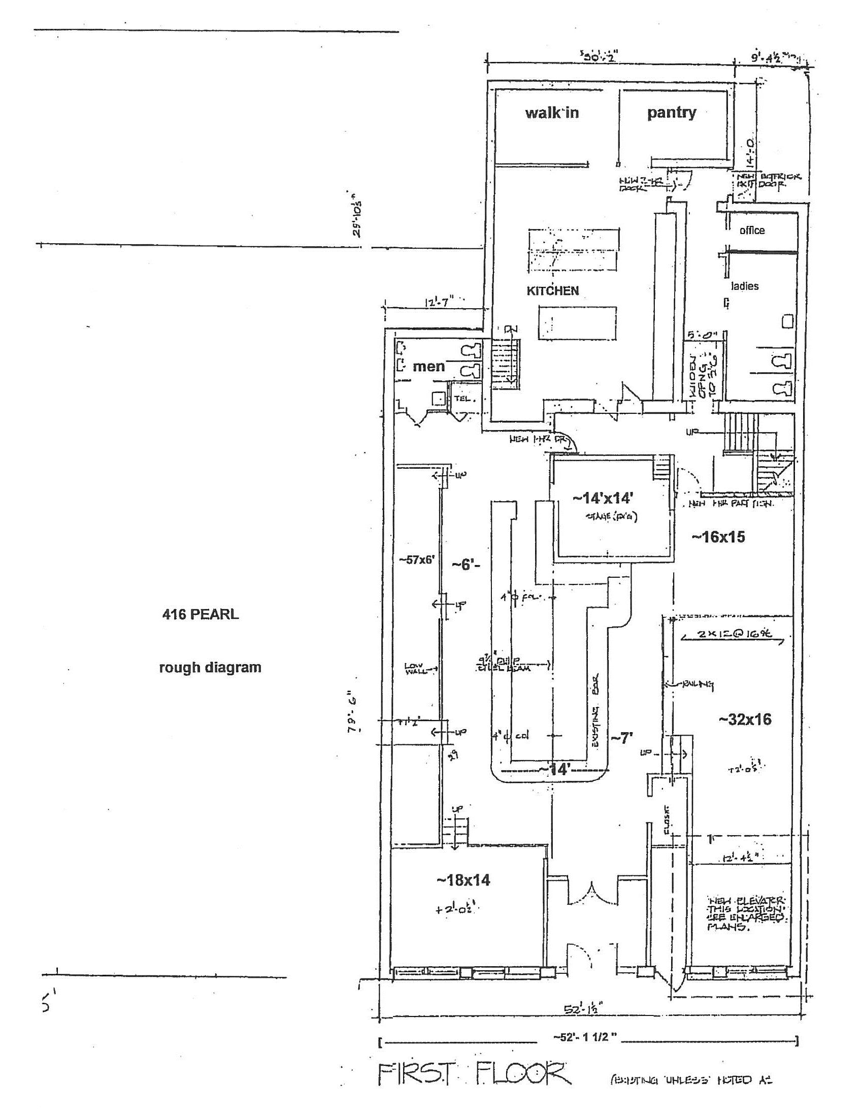 7,200 square feet of space available: 4,000 sf dining room, 1,200 sf kitchen and 2,000 sf of basement storage, 12′ x 14′ elevated stage.